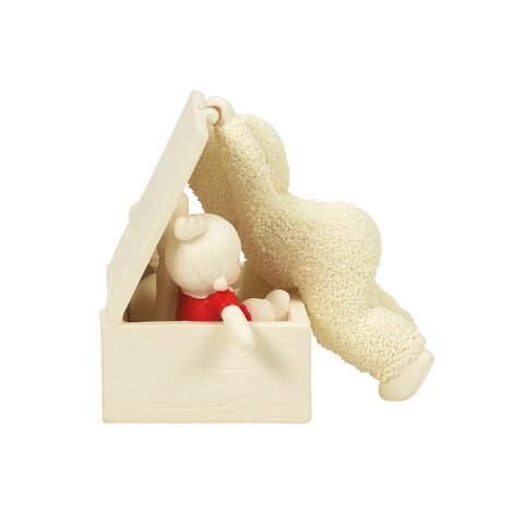 6015989A delightful scene of anticipation and wonder: this Snowbabies figurine depicts a toy chest overflowing with treasures—doll, toy soldier, baseball bat—ready for Santa’s delivery. With its soft sculpted design and winter whimsy, it brings nostalgic joy to any holiday display.