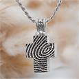 Personalize the front of this classic cross pendant with decorative filigree bail with a loved one's fingerprint, signature, name in script or block font or a meaningful graphic.