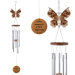 This charming windchime features a butterfly motif and the sail of the chime has an engraved quote: Every moment is a fresh beginning.