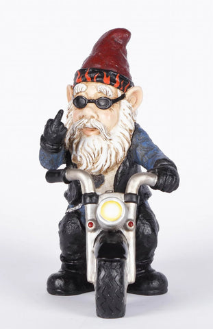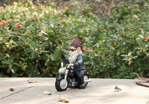 75616-XAdd some attitude to your garden décor with this cheeky biker gnome. With his tough expression and bold gesture, he’s ready to ride off into the sunset and make a statement. Crafted from durable polyresin, this rebellious little figure brings humour and personality to any outdoor space.