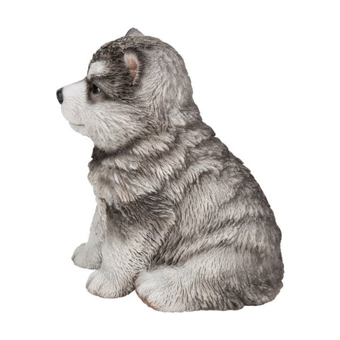87771-16Add a touch of charm and joy to any space with the Pet Pals - Malamute Puppy Garden Statue. This lifelike and beautifully crafted grey and white statue will inspire a sense of wonder and delight. Perfect for dog lovers, it makes a great gift. Made with durable polyresin, it can be displayed indoors or outdoors. Limited one-year warranty included.