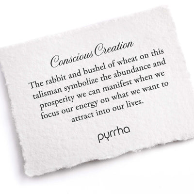 N808-20The rabbit and bushel of wheat on this Pyrrha necklace talisman symbolize the abundance and prosperity we can manifest when we focus our energy on what we want to attract into our lives.