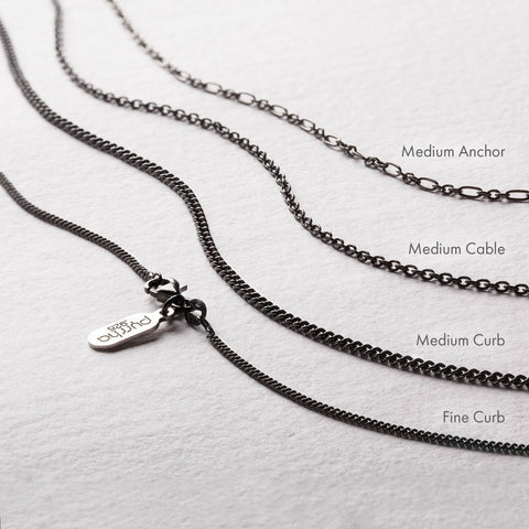 • Sterling silver chain and lobster clasp with Pyrrha branded quality tag