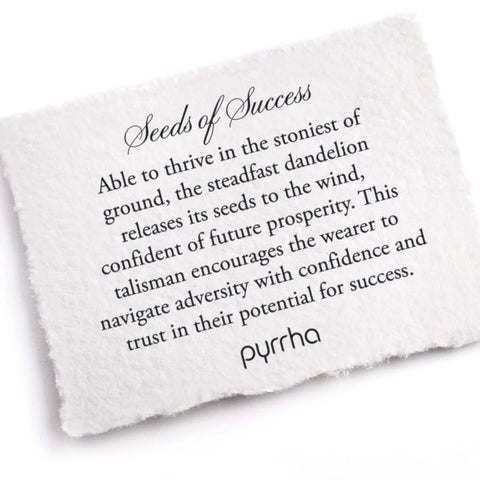 Able to thrive in the stoniest of ground, the steadfast dandelion releases its seeds to the wind, confident of future prosperity. This talisman encourages the wearer to navigate adversity with confidence and trust in their potential for success.