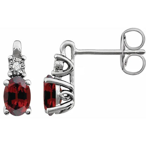 14K White Gold Mozambique Garnet .02ctw Natural Diamond Earrings