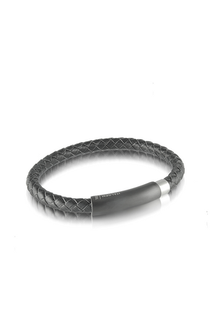 Carbon Fibre Black Leather Bracelet | Italgem Steel