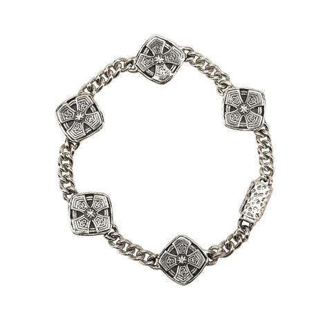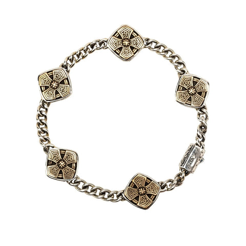 Silver Or Silver And Bronze Cushion Cross Bracelet | Keith Jack