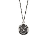 - Sterling silver or bronze talisman on a sterling silver curb chain with a Pyrrha branded quality tag.