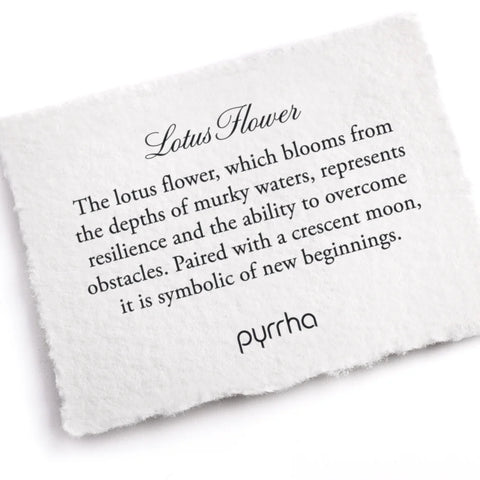 N740-18The lotus flower, which blooms from the depths of murky waters, represents resilience and the ability to overcome obstacles. Paired with a crescent moon, it is symbolic of new beginnings.