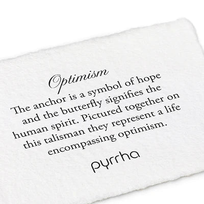 N1433-18The anchor is a symbol of hope, and the butterfly signifies the human spirit. Pictured together on this talisman, they represent a life encompassing optimism.
