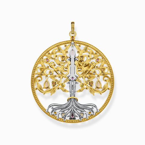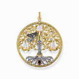 This pendant in Tree of Love design is a statement piece, thanks to its high attention to detail! It’s artistically and elaborately crafted by hand in 19 hours. Its moving details, like the two stone pendants or the solitaire ring, sparkle magnificently. The golden pendant has around 250 highlights, such as mother-of-pearl inlays, colourful stones, a small magpie and fine engraving lines. The stones are set in both prong and frame settings and are placed in round, faceted, drop-shaped or baguette cuts. Wear it on any THOMAS SABO necklace for eye-catching moments!