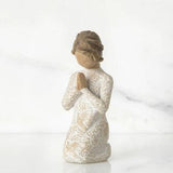 DD27158This beautiful hand-painted prayer figure is perfect for creating a peaceful and healing atmosphere. Made of resin, the figure is dressed in a cream gown, intricately carved with birds and flowers, and kneels in a prayer pose. This piece is an ideal and thoughtful gift, coming with an enclosure card and perfect for adding to your Nativity display. Simple to clean and maintain: gently dust the piece with a soft cloth or brush.