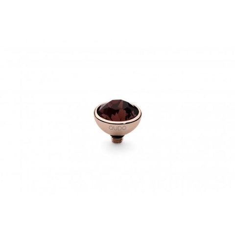 This Qudo 10mm Bottone Top has a Burgundy Swarovski Gem in a 14ct. Rose Gold Plated Stainless Steel Case. Interchangeable tops make it easy to change your look.