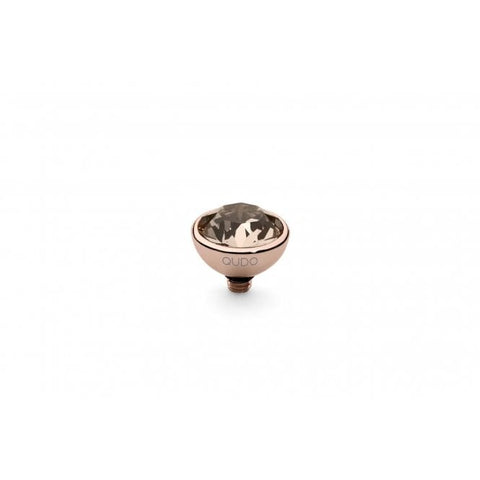 This Qudo 10mm Bottone Top has a Silk Swarovski Gem in a 14ct. Rose Gold Plated Stainless Steel Case. Stack multiple rings for a unique look.