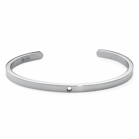 This is a stainless steel bangle from Qudo. Match your favourite ring top on this bangle, simply screw the ring top into the thread at center of the bangle. Arrives in branded packaging.
