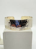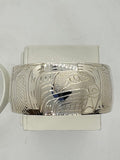 This elegant sterling silver whale bangle is hand-engraved by Kwaguilth Nation artist Nancy Dawson, the creative force behind Silver Eagles—Hand Crafted First Nations Jewellery. In Northwest Coast culture, the whale symbolizes unity, harmony, and communication, often regarded as the guardian of the sea and a carrier of deep spiritual messages.